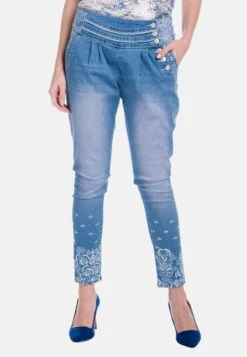 Koroshi Embroidered Semibaggy Jeans Slim FitMedium Blue Denim Donna Jeans KOL21N04X-K11