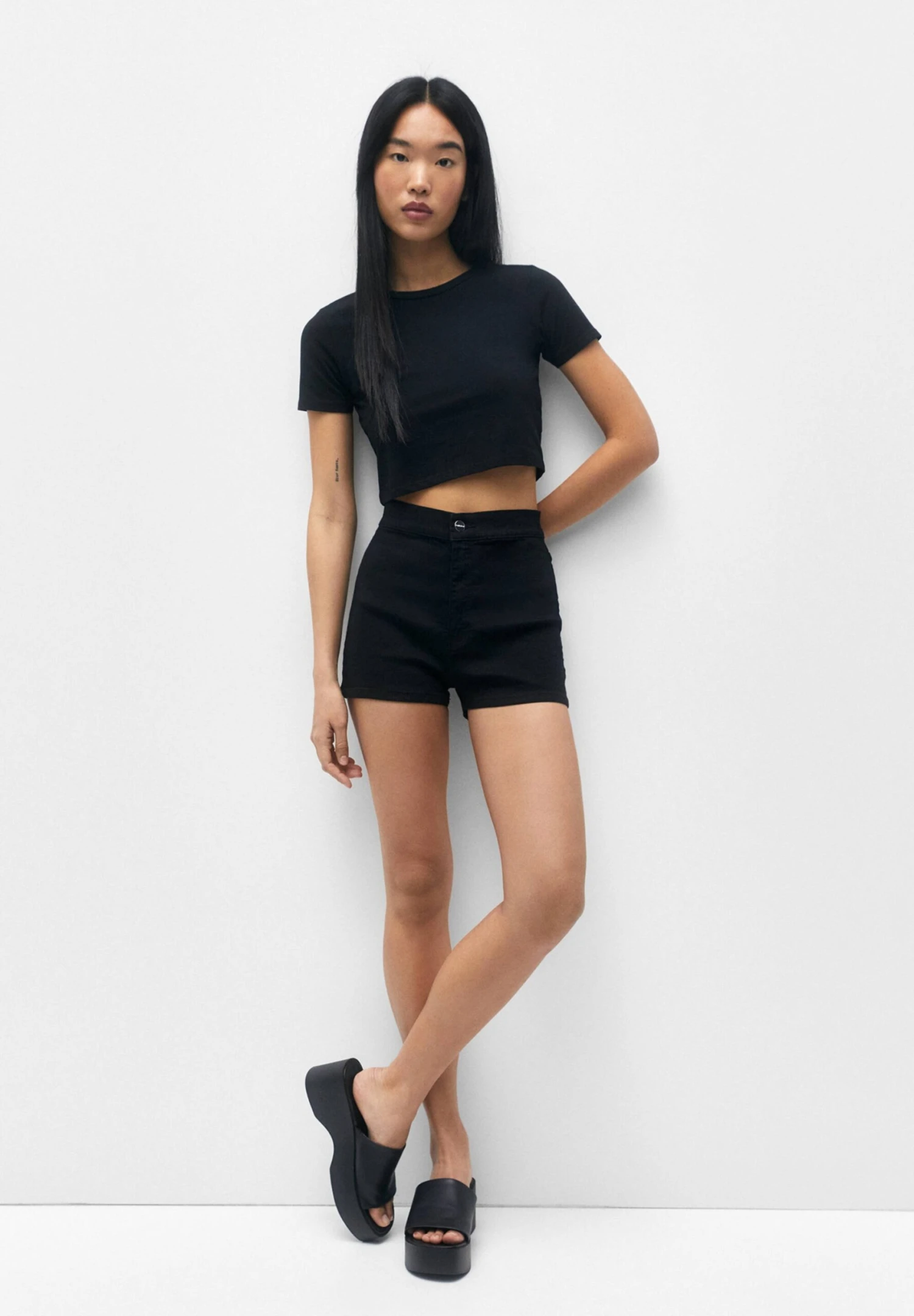 PULL & BEAR High-Waist- Shorts Di Jeans – Black