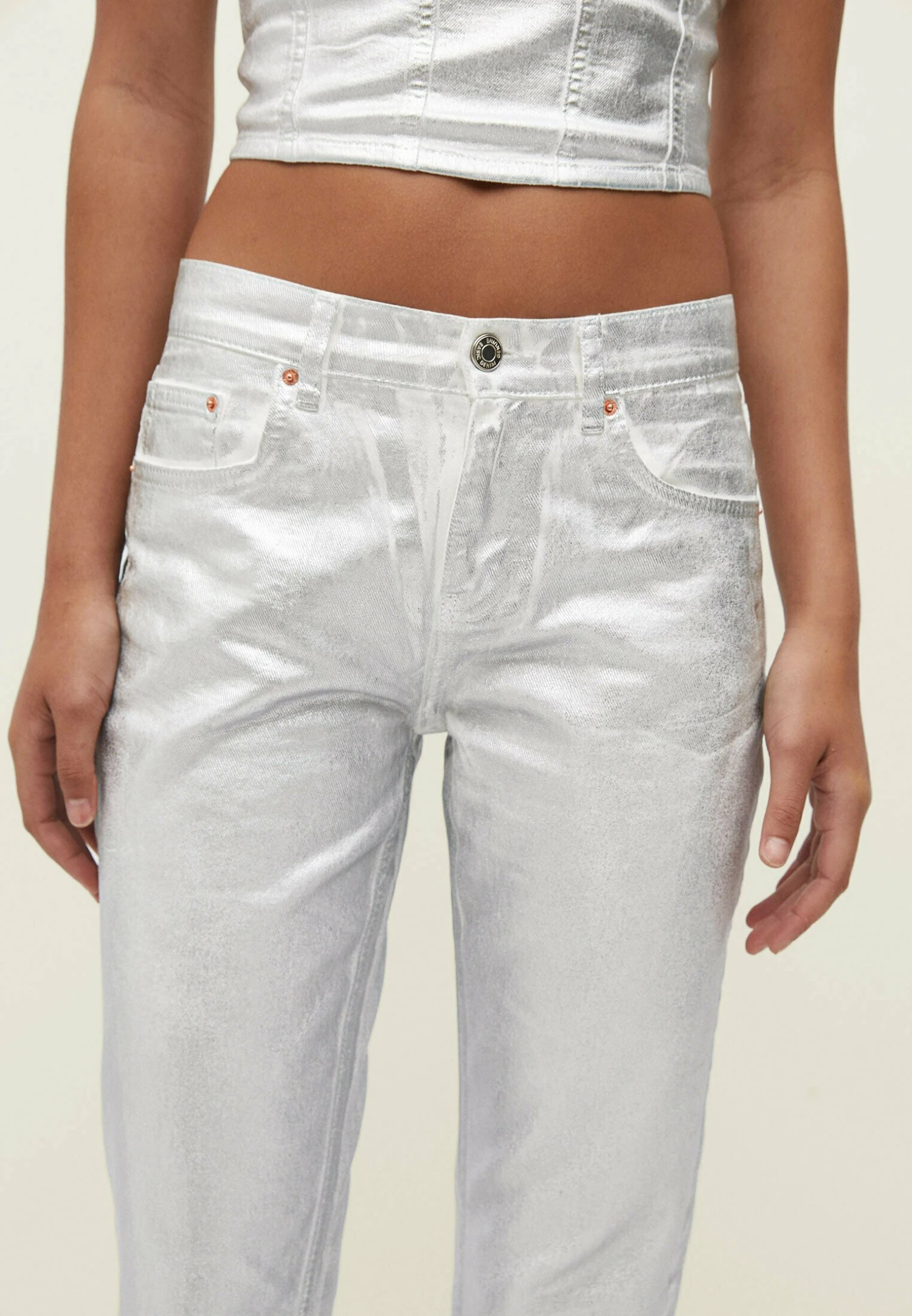 Stradivarius Low-Cut Metallic Jeans A SigarettaSilver Coloured Donna Jeans STH21N0I1-D11